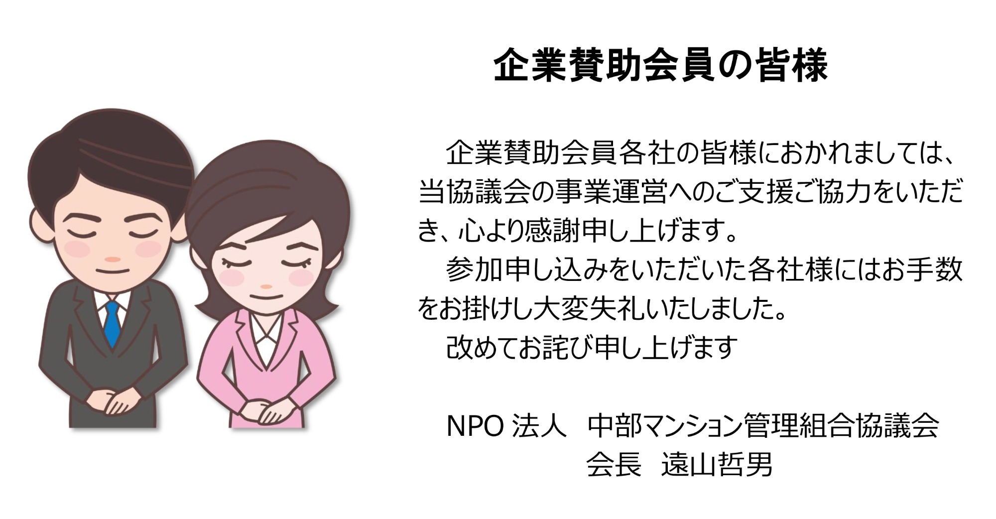 先般、表題について本年2月27日開催のご案内を企業賛助会員の皆様にお知らせいたしましたが、諸事情により今年度の開催を見送ることになりました。